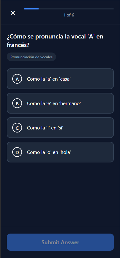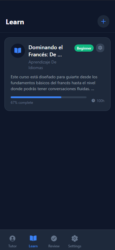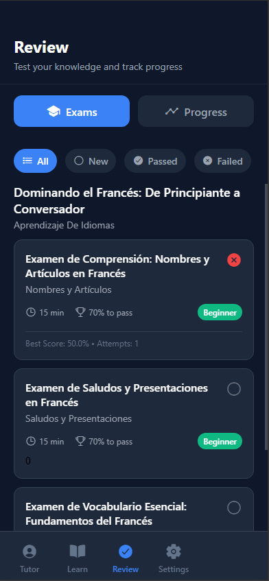 Salta conferencias aburridas y libros de texto estáticos. Aprende a través de conversaciones atractivas, ejercicios interactivos y contenido adaptativo que se ajusta a tu ritmo y te mantiene motivado.